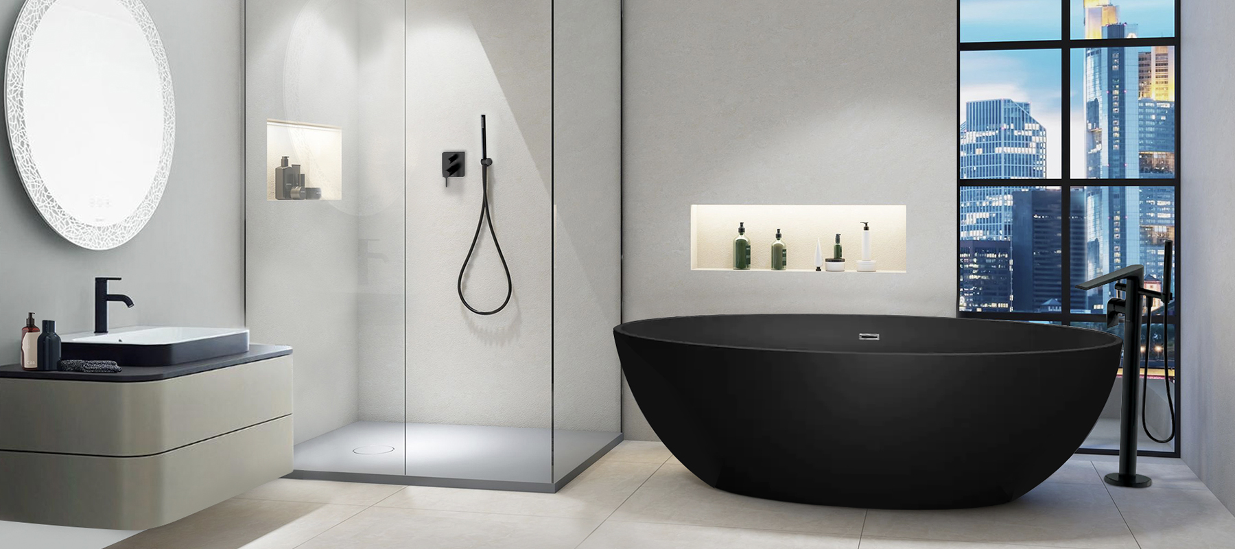 Solid Stone Bathtubs are bathtubs that are made out of natural stone materials such as granite, marble, or limestone. These bathtubs can be carved from a single piece of stone or may be constructed using multiple pieces that are joined together. Stone bathtubs are known for their durability, heat retention, and natural beauty. They can be quite heavy and are typically more expensive than traditional bathtubs made from materials such as porcelain or acrylic. Granite bathtubs and Marble bathtubs offer several benefits, including durability, heat retention, aesthetics, long-lasting, hygiene, customizable and low maintenance. However, it's important to note that marble is more delicate than granite and is more prone to scratches and etching. It's also more sensitive to acidic products and should be cleaned with mild and PH-neutral detergents, and regular sealing is also necessary.